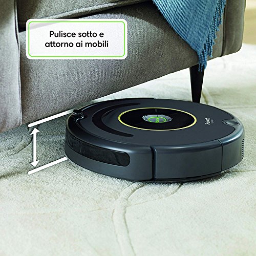 Il robot aspirapolvere Roomba 650 prodotto dal marchio specializzato iRobot è sicuramente una delle opzione più basic del marchio, che riesce però allo stesso tempo ad avere una buona qualità e ad offrire delle prestazioni di livello che permettono di mantenere la casa sempre pulita e in ordine. Riassumiamo quelle che sono le basilari qualità di questo modello, in questo modo sarete in grado di capire se faccia o meno al caso vostro. Innanzitutto partiamo dai punti di forza del Roomba 650, in primis la presenza di una batteria molto potente che garantisce un'autonomia davvero invidiabile, che si rivela adatta anche per chi ha case dalla superficie abbastanza ampia. Inoltre la presenza di un filtro AeroVac e di un sistema di pulizia brevettato che si distingue in tre fasi ben distinte tra loro, rende questo robot uno dei modelli del marchio iRobot più adatti a tutti coloro che hanno cani o gatti in casa; infatti il modello 650 è perfetto per aspirare tutti i peli dei vostri animali domestici. D'altra parte c'è da tener conto anche del fatto che si tratta di un robot piuttosto rumoroso e che il prezzo di vendita è abbastanza alto. Messe sul piatto della bilancia, le qualità positive superano quelle negative facendo di questo robot un ottimo acquisto!
