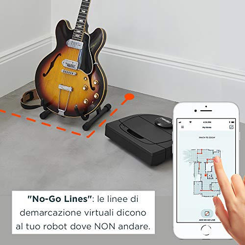 Grazie all’app Neato è possibile collegare il macchinario ad un dispositivo mobile e programmare, organizzare e gestire completamente da remoto la pulizia.